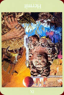The Hermit shuts out the world and retreats into solitude to better understand some spiritual aspect of life. He opens to the cosmos and lets it's wisdom sink in. Hermits are often seen as wise old men who can guide a traveller along a journey.