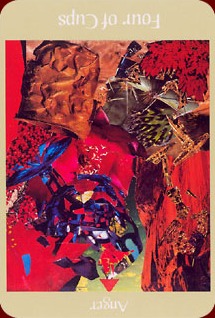 With the 4, the second cycle of this suit is commenced, where a choice between structure and feeling has to be made, where old securities have to be let go of to work towards a new future. But like Wands, Cups don't like structure much, they prefer to be free and dream rather than to make commitments and go for something.