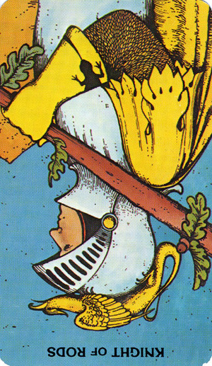 The Knight of Wands likes action and progress, but isn't too concerned with the usefulness of his actions or the ramifications to those around him.