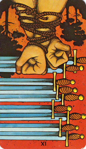 When this card falls, it is time to deal with grief cropped up over possibly a long time. It's now time to get rid of both the grief and the blockages it's caused in you.
