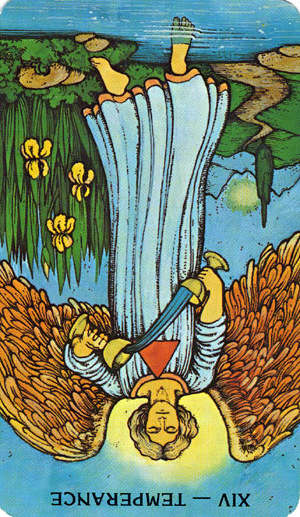 With Death, an important decision made with The Hanged Man was given shape by letting go of the old. Now you're in a transitionary period and this Temperance card is a place of rest during the journey through the underworld.