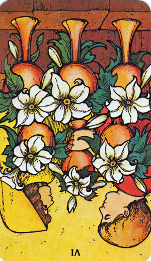 The 6 of Cups is about having confidence in something. It is the number of security and harmony. In the suit of Cups this means to be in harmony with yourself.