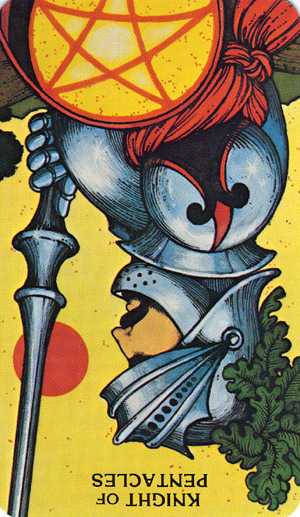 The Knight of Pentacles doesn't like to get worked up about anything. He prefers to make quiet steady progress by sticking to a persevering attitude, while not allowing himself to become exhausted or stressed.