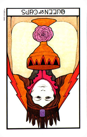 Queens and Cups are both somewhat turned inward. This might make whatever choice you're facing when this card falls, a deep one. Take your time, and don't let the issue overwhelm you or your emotions.