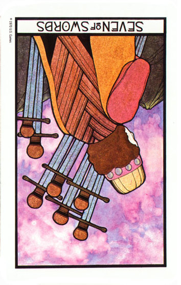 The 7 of Swords is about making slow progress because you can't trust the situation and/or people around you.