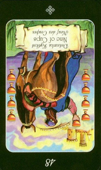 The 9 of Cups represents achievement and contentment. It is an excellent time to take some rest and enjoy yourself.