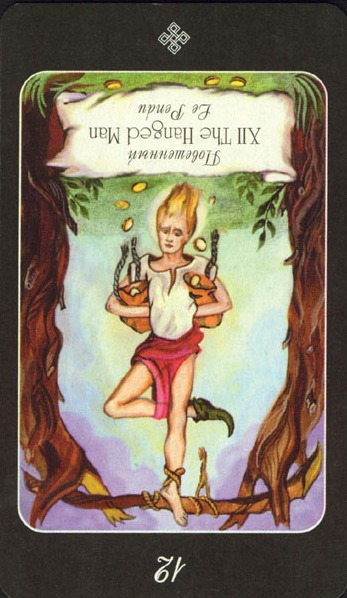 First you learned that you're not a plaything of fate, that you can make your own choices. Then you've learned how to fend for yourself and face yourself. Now, at The Hanged Man, you can learn to let go. You no longer have to cling to old values. You've found strength in yourself and by letting go, you allow growth.