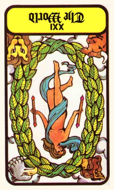This card falls when you've completed all assignments, overcome all obstacles and are completely at peace with yourself due to your accomplishments. Yet Tarot wouldn't be Tarot if it didn't challenge you to enter entirely new worlds and start the process all over again.
