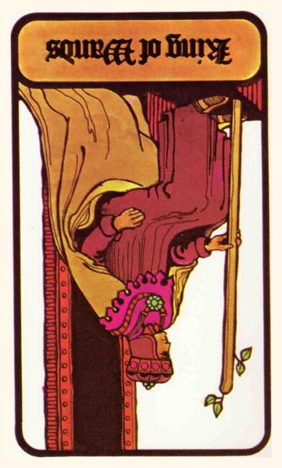 The King of Wands uses the properties of Wands (vitality, optimism, enthousiasm) to go out with confidence. He is seen as a leader with charisma.