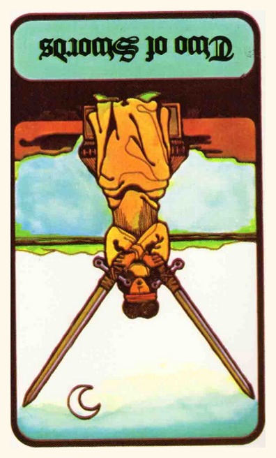 The 2 is an assignment number in tarot, and in this case of the 2 of Swords, it's about being forced to wait for something, often even while blindfolded in some sense.
