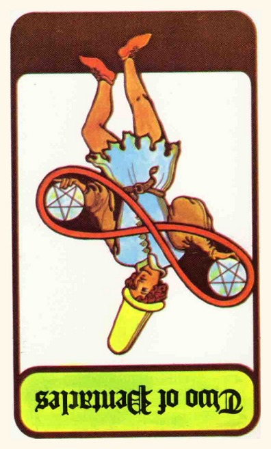 The 2 of Pentacles is an assignment number card, and the assignment here is to maintain a happy and relaxed attitude during a wait for results of what you started.