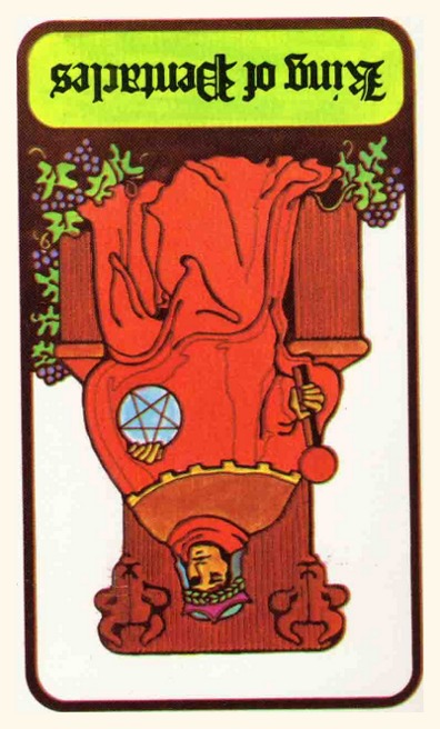 The King of Pentacles uses his Earthly attributes to rule. He goes about his work like an old style business man; he avoids unnecessary risks, aims for real results, and acts from confidence.