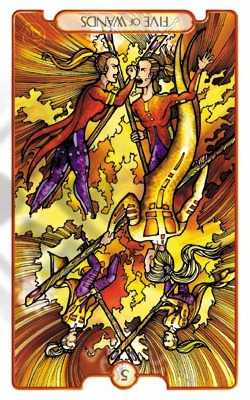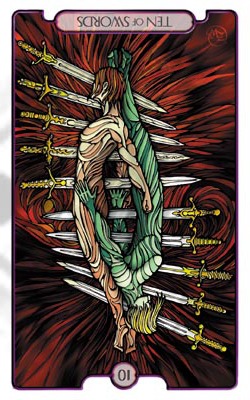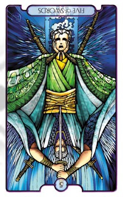 The 5 of Swords is about facing reality. The 5 is an assignment number, and in the slighly more difficult suit of Swords, it means you face a difficult challenge where your past experiences could hold you down.