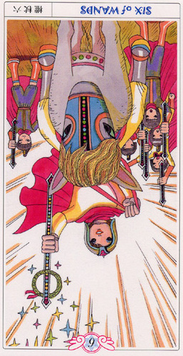 The 6 of Wands represents victory (over yourself maybe). 6 is the number that represents the rewards of hard work, which you did in card 5. When a 6 of Wands is in your game, you might be feeling a little proud with your accomplishments. But some modesty might help you shine even better.