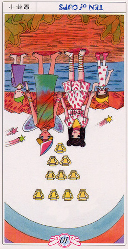 The 10 of Cups is the link to the Swords suit. It is time to leave your own emotions behind and face the world and the tasks ahead.