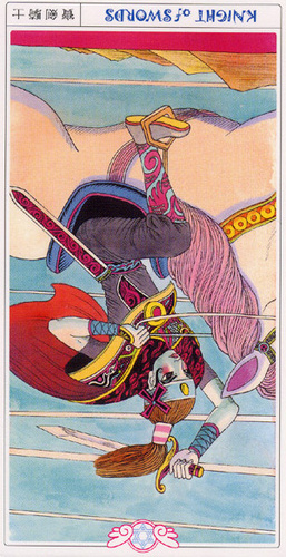 The Knight of Swords lacks the naivety of the Knight of Wands, he has analyzed the terrain ahead and weighed his options there. He knows what his own nature can throw into the mix, but does not let himself be held idle by that. The activities ahead will likely include the solving of conflicts and problems on your road to your ideal.