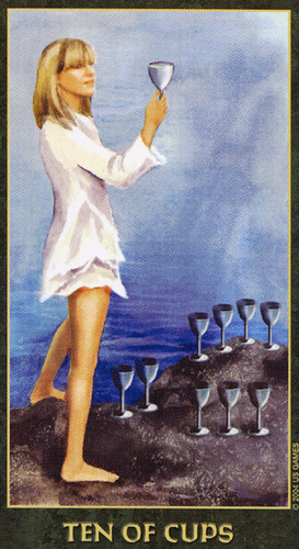 The 10 of Cups is the link to the Swords suit. It is time to leave your own emotions behind and face the world and the tasks ahead.