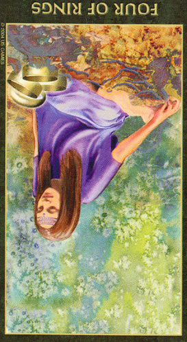 The 4 of Pentacles is about holding on to what you got. The number 4 represents structure and order, and fits well with the suit's element, Earth.