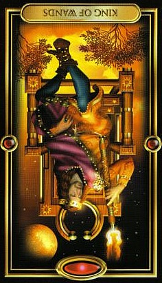 The King of Wands uses the properties of Wands (vitality, optimism, enthousiasm) to go out with confidence. He is seen as a leader with charisma.