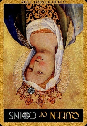 The Queen in the suit of Pentacles becomes aware of her Earthly attributes; she's reliable and sober, able to give good advice.