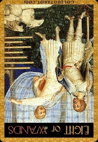 When this card falls, it might serve to point your attention to whatever is new and fresh in your life; a new job, study, love relation, business relation, project, etc. Look to the other cards in the reading to see what more can be said about it.