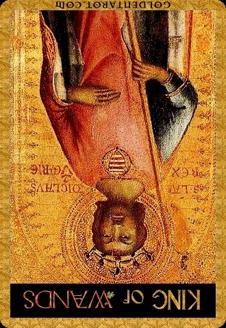 The King of Wands uses the properties of Wands (vitality, optimism, enthousiasm) to go out with confidence. He is seen as a leader with charisma.