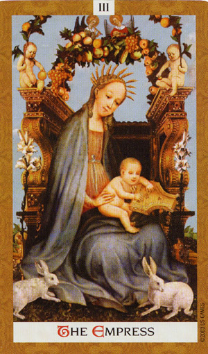 The Empress carries the number 3. This is the number of birth, of plenty, of harvest, of summer, of the first results. The number 3 stands for joy and fun, for creativity and fantasy, for warmth and humor.