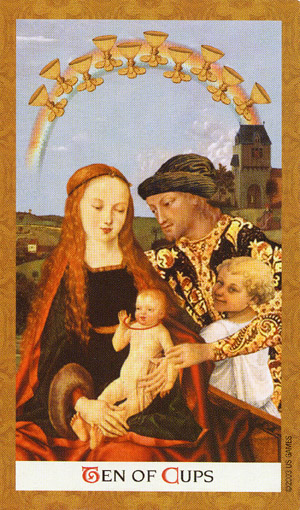 The 10 of Cups is the link to the Swords suit. It is time to leave your own emotions behind and face the world and the tasks ahead.