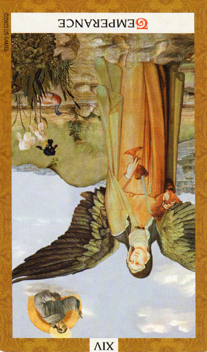 With Death, an important decision made with The Hanged Man was given shape by letting go of the old. Now you're in a transitionary period and this Temperance card is a place of rest during the journey through the underworld.