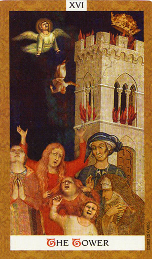 The card of The Tower goes by different names in different Tarot games. Some call it The Tower of Destruction, or The House of God, or Tower of the Light.