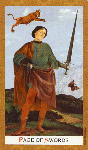 The Page of Swords is probably more than the other Pages an explorer at heart. The element of the Swords suit is Air, and Air is the best place to explore from after all ;-)