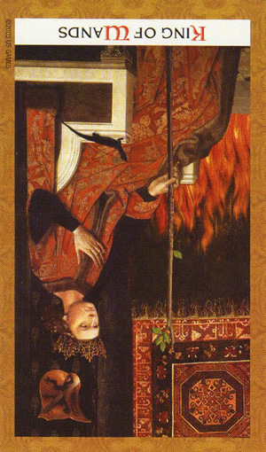 The King of Wands uses the properties of Wands (vitality, optimism, enthousiasm) to go out with confidence. He is seen as a leader with charisma.