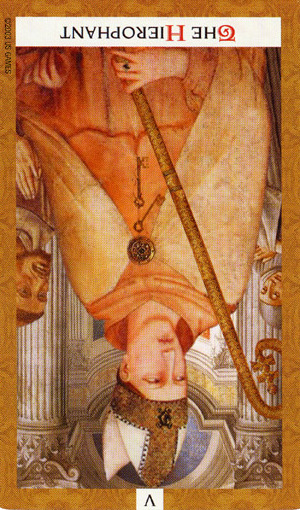 Where The Emperor is the chief of worldly power, The Hierophant is the head of spiritual matters.