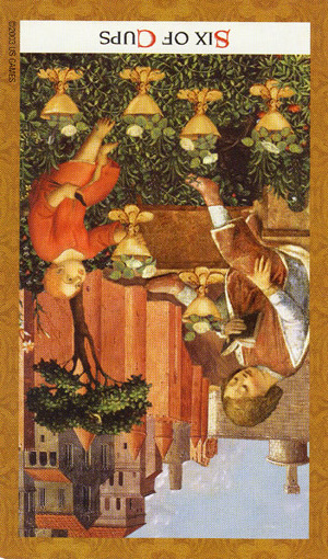 The 6 of Cups is about having confidence in something. It is the number of security and harmony. In the suit of Cups this means to be in harmony with yourself.