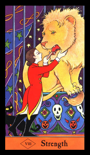 Strength is the second of the four midieval values. Justice, card 11, is the first, and the third, Temperance, is card 14.