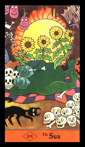 The Sun carries the number 19, a composed value of 1. This is the third composed 1 in the Major Arcana. It's the culmination of the 1's. The third 1 is a reward and a beginning at the same time. It also represents creative energy.