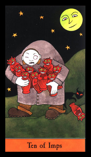 The 10 of Wands is therefore the transition from the element Fire (associated with Wands) to the element Water, associated with Cups. As you might imagine, this not the easiest of transitions.