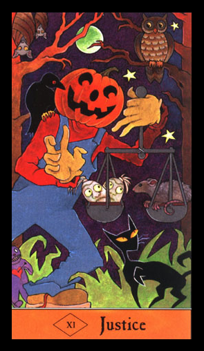This card carries the number 11. In the Rider-Waite deck, Strength and Justice have swapped places because Waite saw links with the astrological signs Leo and Libra.
