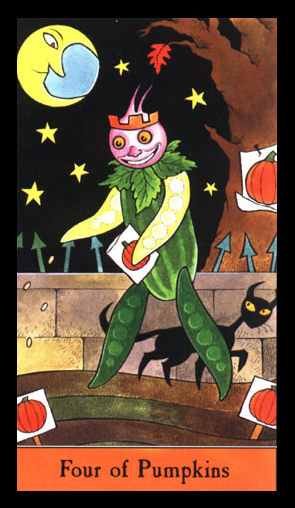 The 4 of Pentacles is about holding on to what you got. The number 4 represents structure and order, and fits well with the suit's element, Earth.