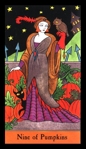 The 9 of Pentacles represents earned rest. The element Earth, attached to the Pentacles suit, appreciates the rest that completion of hard work brings. This is a good time for games and relaxation.