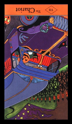 During the prevous card, The Lovers, all the wisdom of the first cards in the deck has been processed and a choice was made for personal growth. Now it's time to do something with all this baggage, to actually travel the road. A lot has been done so far, wisdoms have been accumulated and integrated into one's personality.