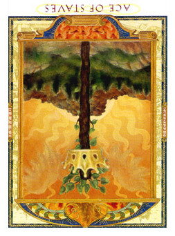 When this card falls, it might serve to point your attention to whatever is new and fresh in your life; a new job, study, love relation, business relation, project, etc. Look to the other cards in the reading to see what more can be said about it.