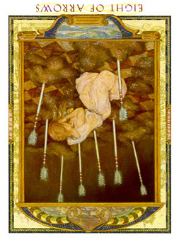 The 8 of Swords is about slowly regaining strength and energy. The 8 is an assignment number, and in the element of Swords it's a bit harder than usual.
