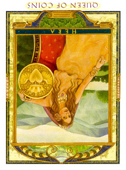 The Queen in the suit of Pentacles becomes aware of her Earthly attributes; she's reliable and sober, able to give good advice.