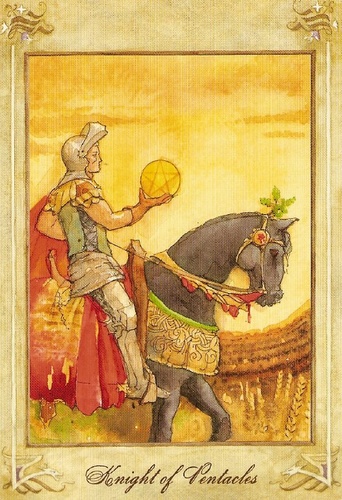 The Knight of Pentacles doesn't like to get worked up about anything. He prefers to make quiet steady progress by sticking to a persevering attitude, while not allowing himself to become exhausted or stressed.