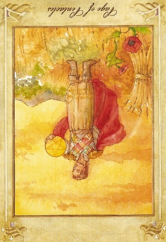 Pages explore and gather information about the road ahead, with an almost naive attitude. The Page of Pentacles is sometimes described as a bridge builder; Pentacles is the suit where the actual work is done, and the Page here enables those that follow to quickly cross difficult terrain.
