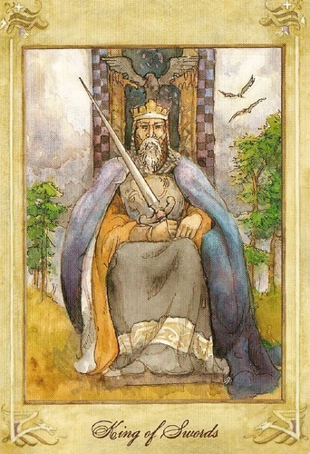 The King of Swords rules with diplomacy and a strong sense of responsibility, not just for himself but also for those around him, yet he is not afraid to make heavy decisions that compel him to eliminate dangers and dangerous opponents with some force.