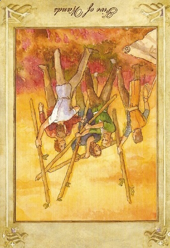 The 5 of Wands represents competition. The 5 is the second assignment number, and therefore a difficult card. 5 combined with the Wand's element fire challenges you. You'll have to fight hard for your idea, but you stand a good chance of succeeding.