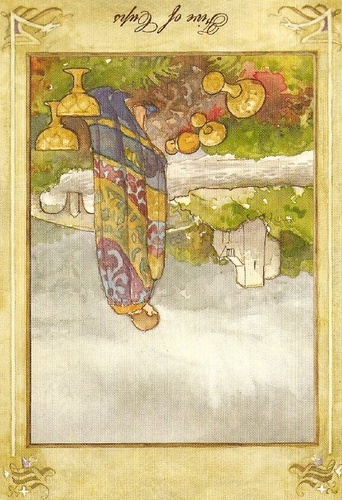 The number 1, associated with this Ace card, is the number of a fresh start with yet more new impulses coming your way. It might be compared to The Fool, the first card of the major arcana.