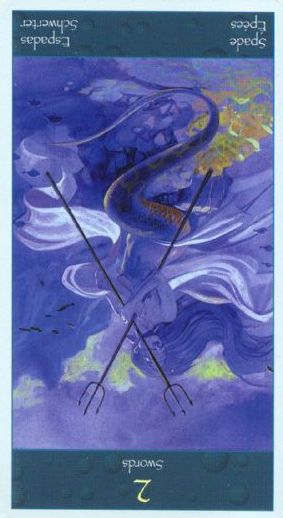 The 2 is an assignment number in tarot, and in this case of the 2 of Swords, it's about being forced to wait for something, often even while blindfolded in some sense.